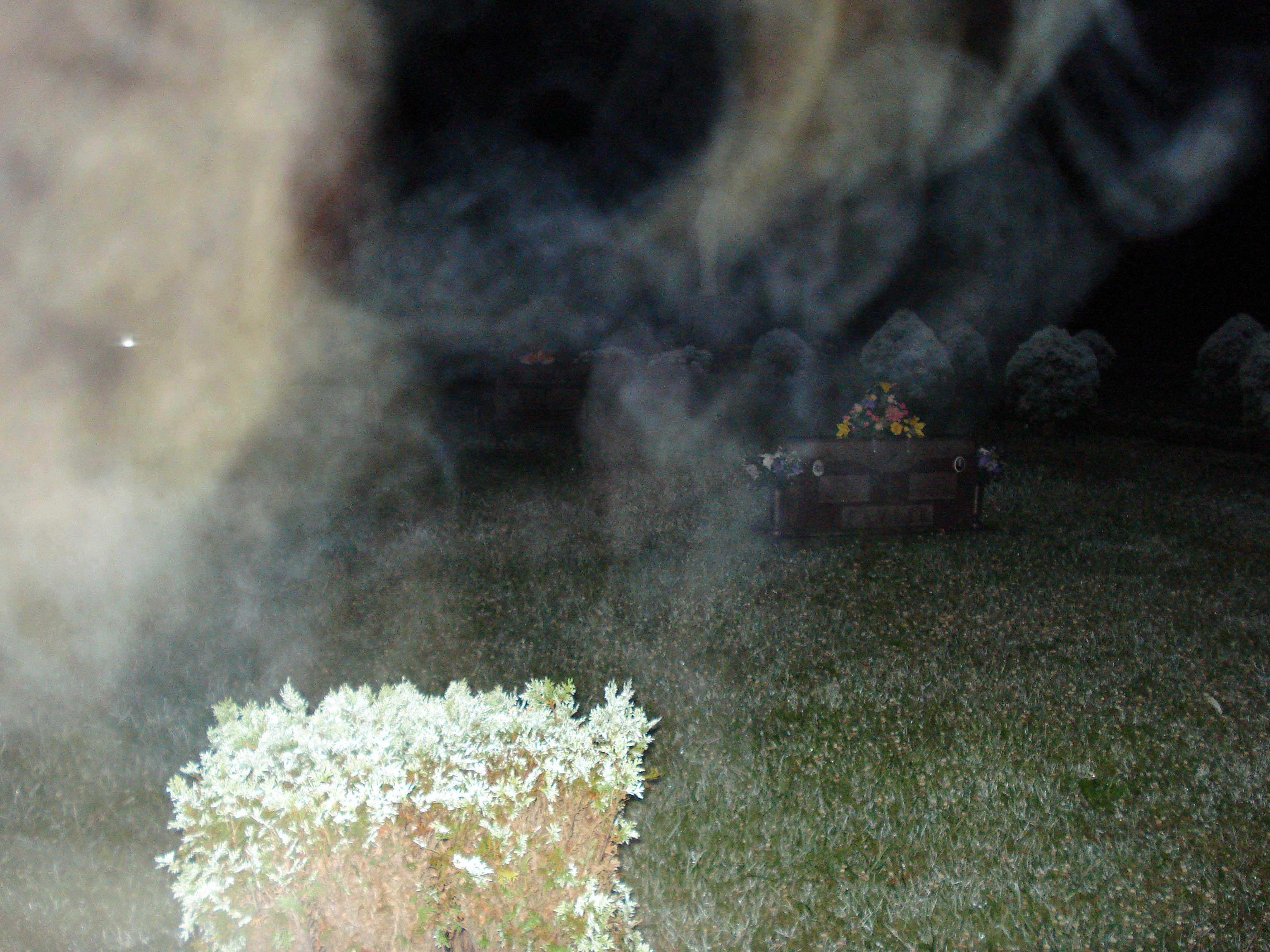 Most claims of mysterious mist can be ruled out as moisture from the photographer’s mouth or even cigarette smoke. Be mindful to never take photos around cigarette smoke or in spots where you are breathing a lot of visible moisture. Vortexes are usually nothing more than a loose camera or wrist strap dangling in front of the camera lens. They appear very bright and close to the camera because the flash illuminates them the most. Always remove any kind of camera strap from the camera to prevent this from happening.