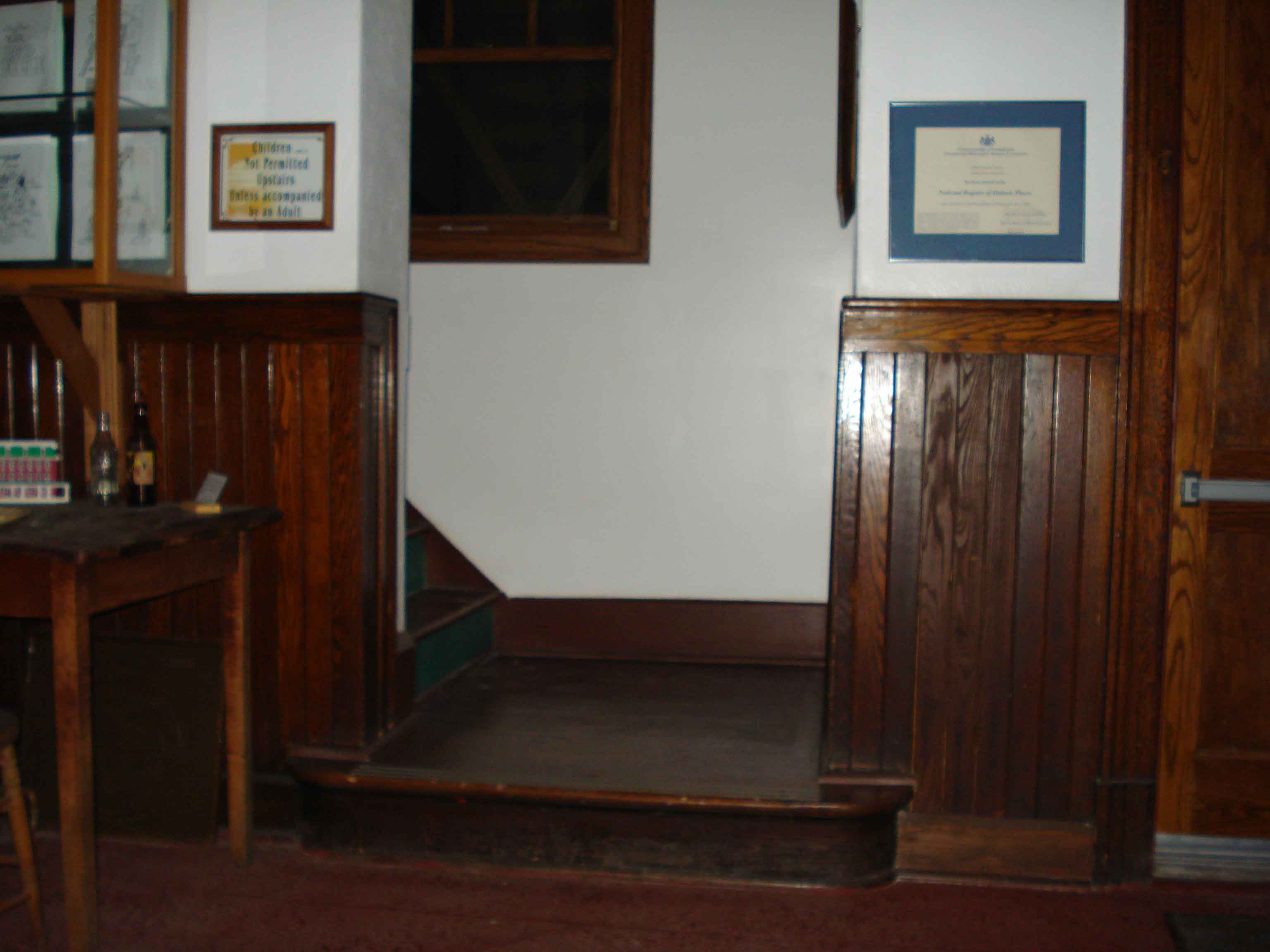 - A shadow figure was seen by a current board member (as of 2008)moving down the stairwell from the 2nd floor and disappeared through the wall below the steps.