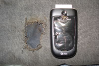 -The screen was melted on the phone but the keypad and battery backing seemed fine.