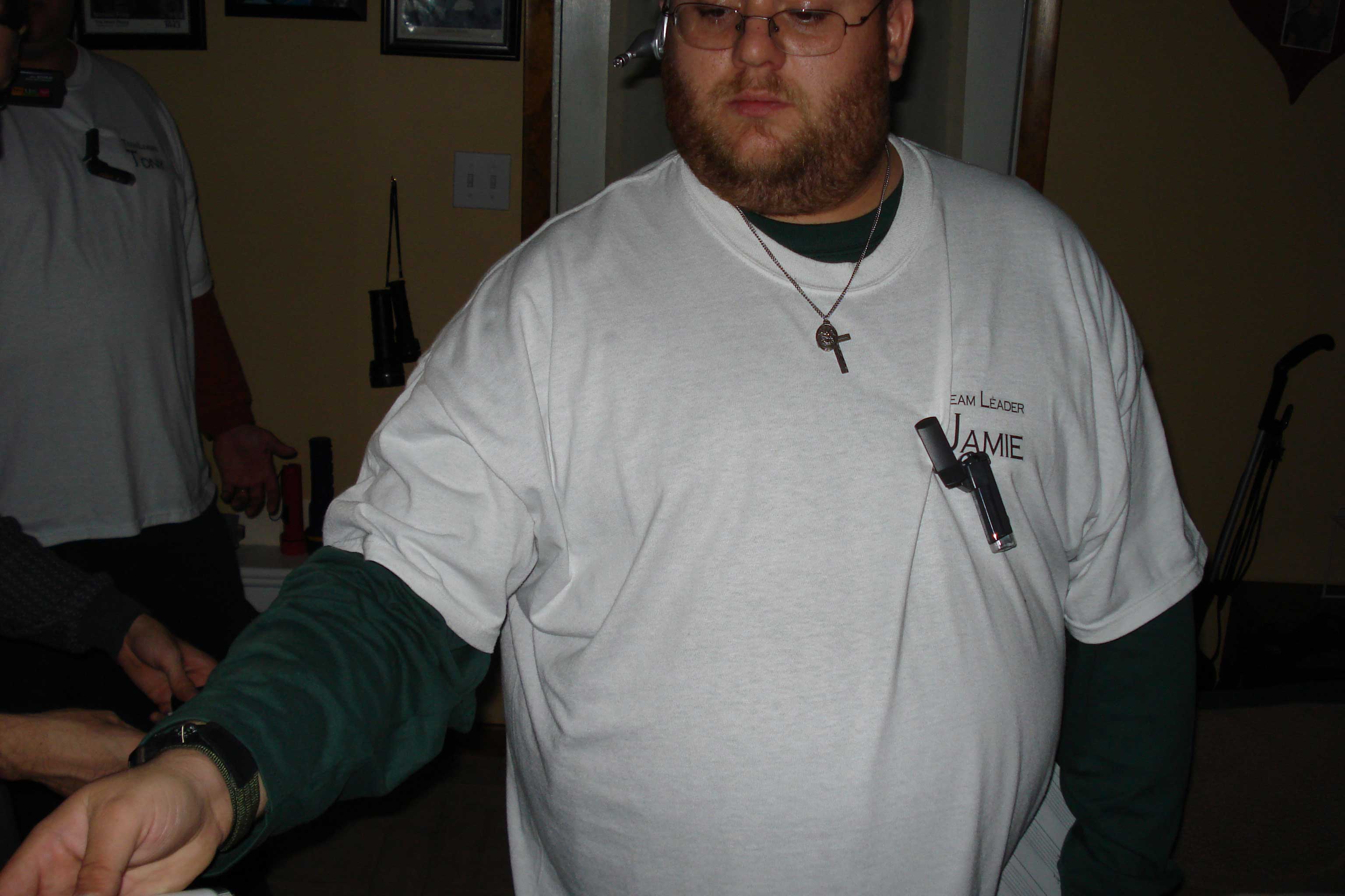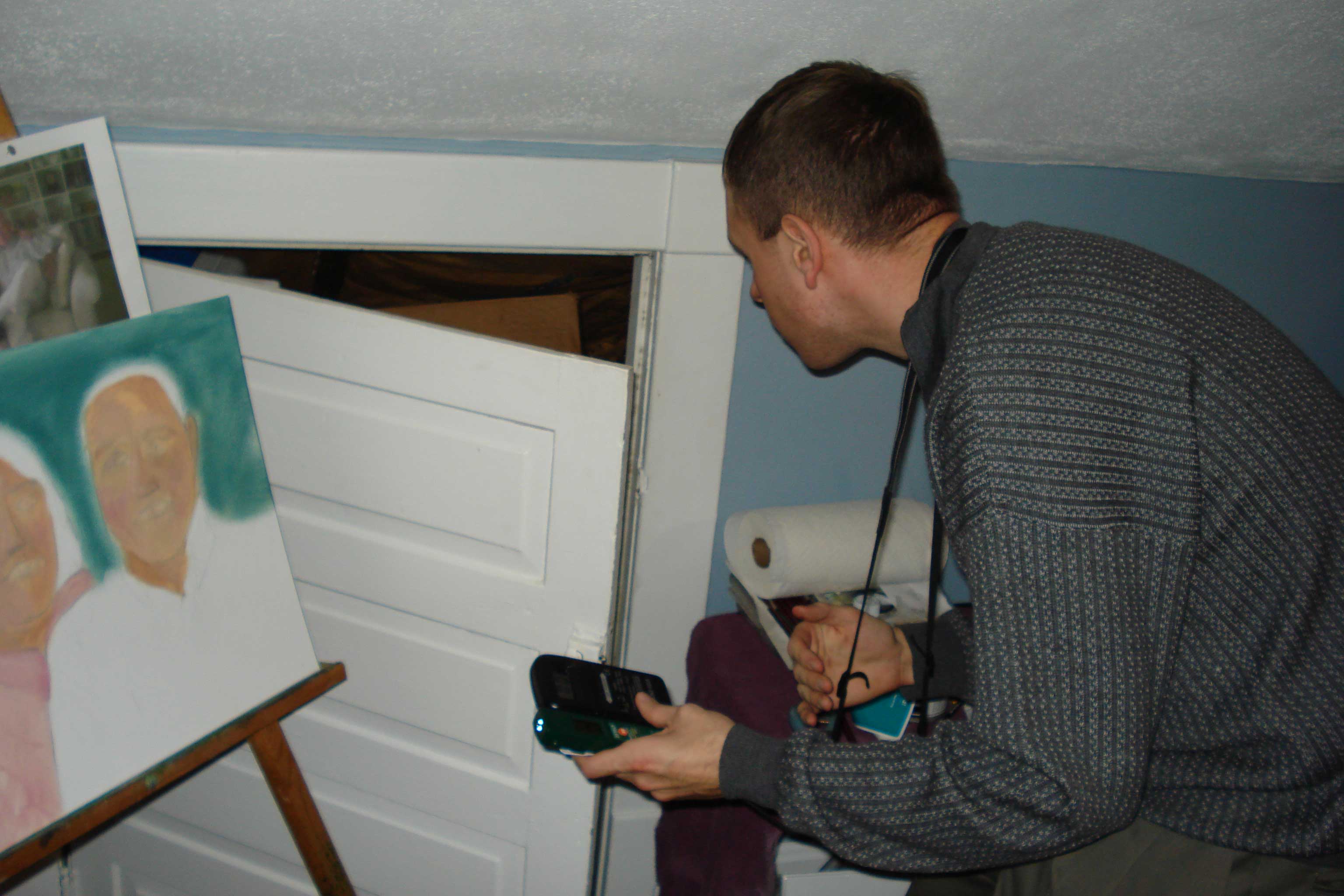 Jay asked questions as we went about the house, but nothing was detected. It was decided that Walter and Jamie would monitor the attic for a while and the others would go downstairs in the living room. This was done so we could cover more of the house at the same time. Soon after, the homeowners arrived and we had to wrap up most of our investigation.