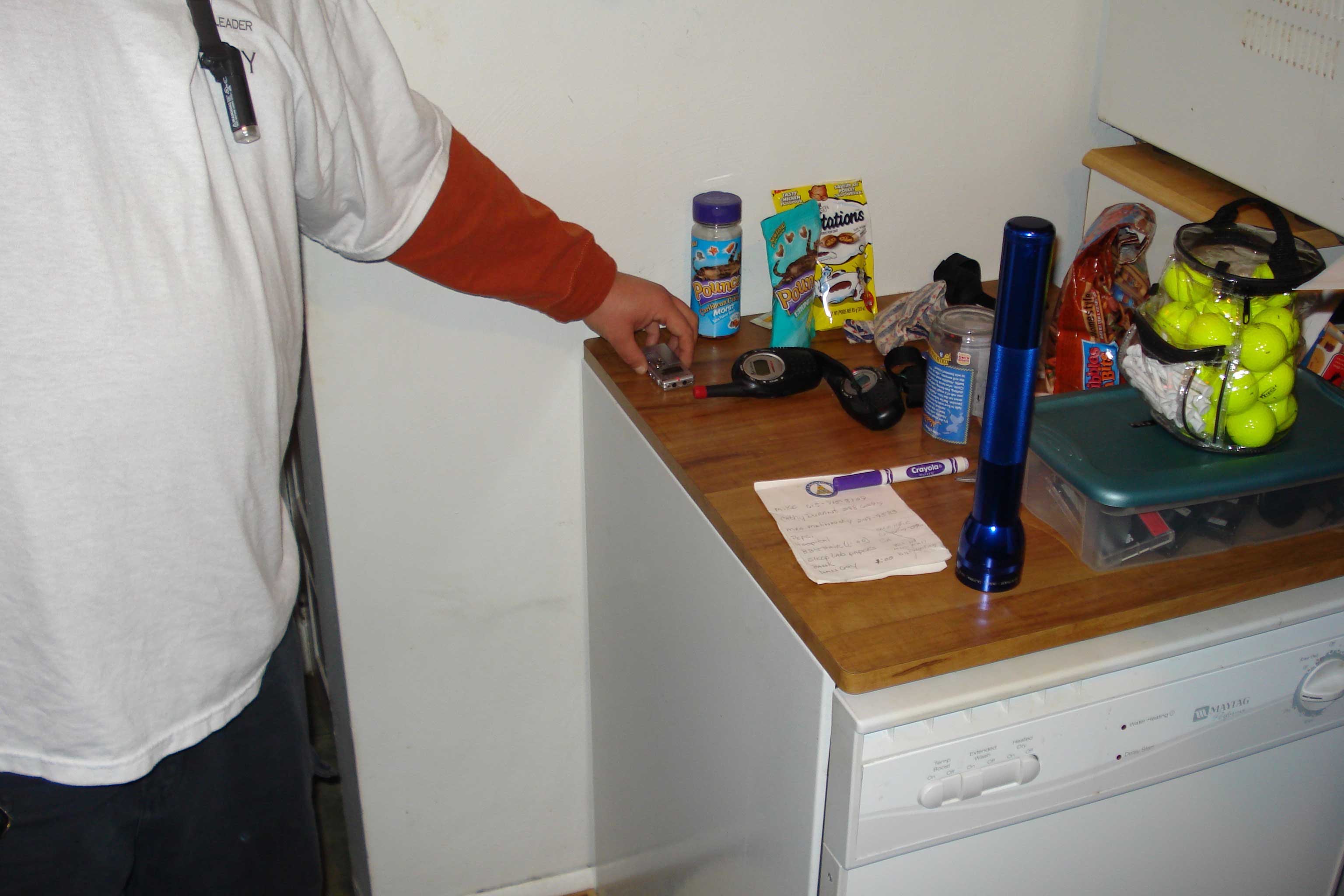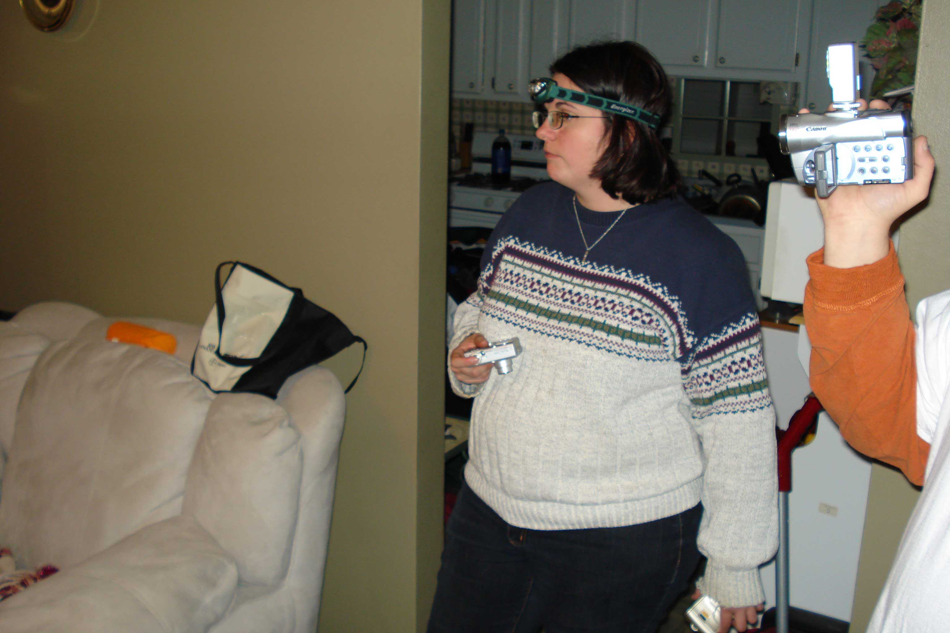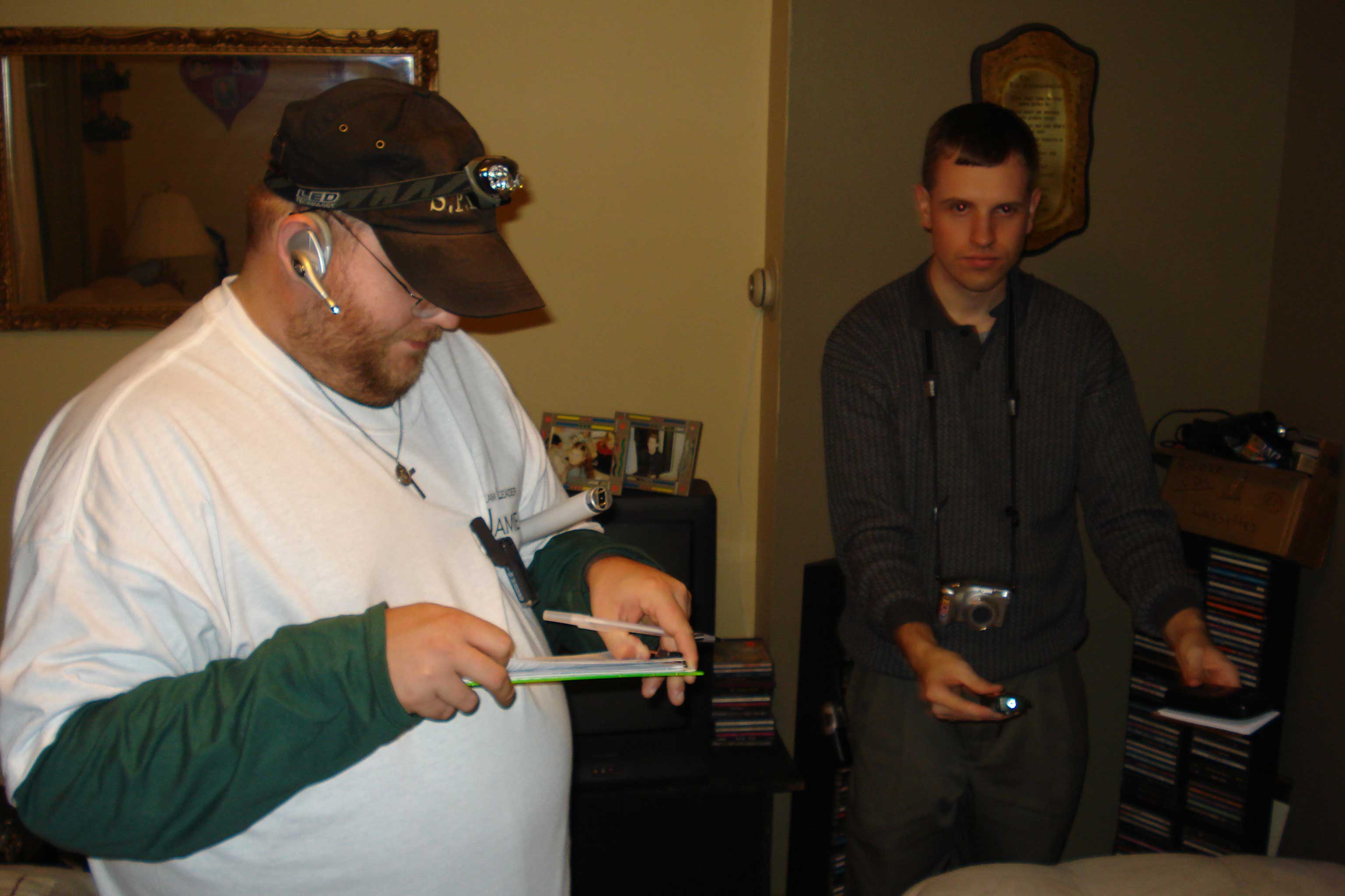 Equipment Used: Extech Infrared IR301 Stem Thermometer, Cell Senor EMF Meter, Sixel Axis Digital AC Gaussmeter/Teslameter, Dowsing Rods, Fluke LVD-1 Volt Light, Sony Cybershot 7.2 Megapixel Camera, Samsung Maxima Zoom 90 GL 35mm Camera, Nikon CoolPix 4800, Canon Elura 60, Sony Handycam DCR-HC28 MiniDV Handycam Camcorder, 2x Sony DCR HC-38 MiniDV Handycam Camcorder, Olympus DS-2, Olympus WS300M Digital Voice Recorder, Sony ICD-P210, 2x Remote Controlled P.I.R. Alarm, Energizer 6 LED Headlamps, GE 3540 14 Channel Transceiver, Midland GXT600 Transceivers, HP Pavillion DV6000t, Infrared LED Flashlights