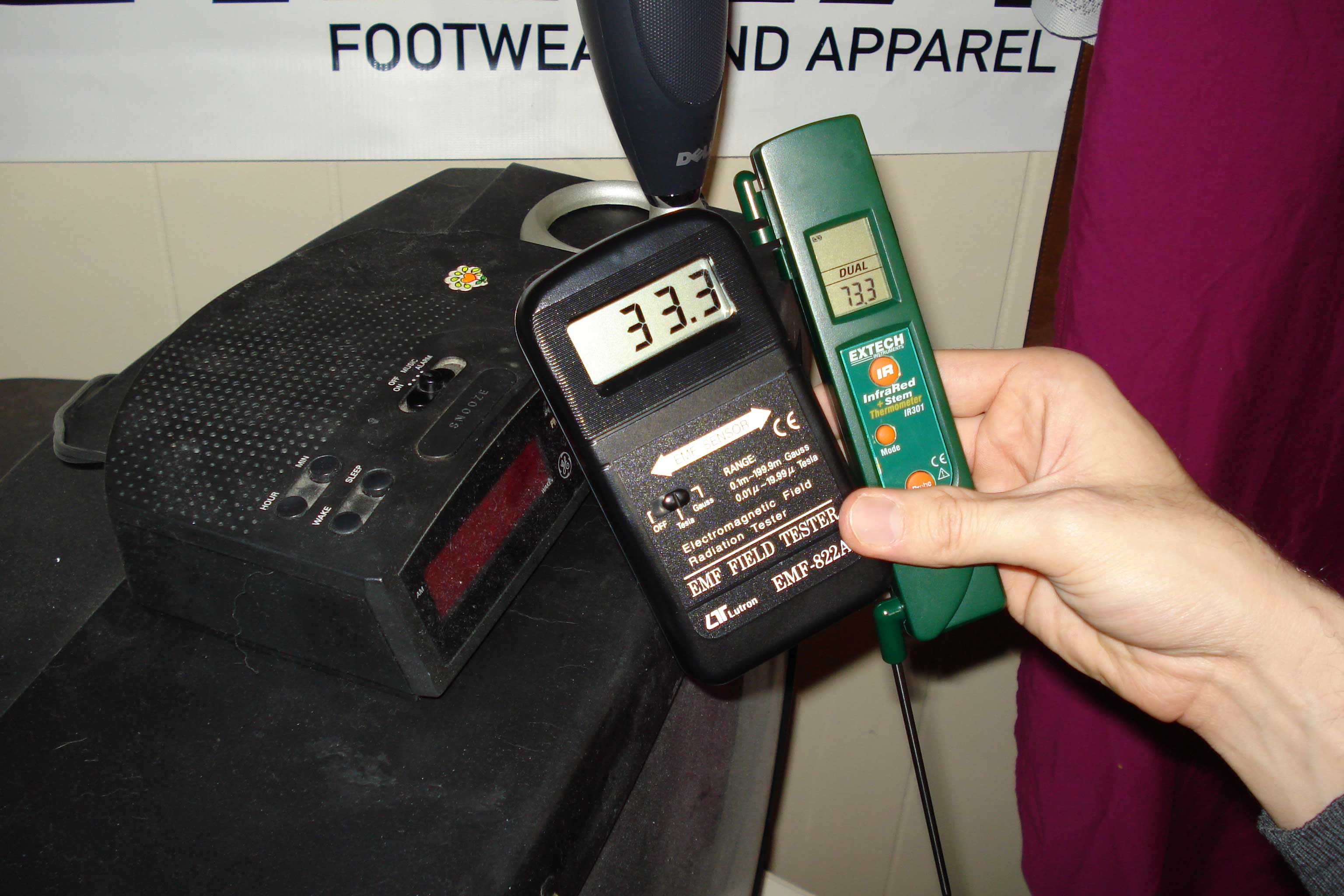 The homeowners then departed leaving us alone in the house. The first thing we did was take baseline readings of all the rooms. This included measuring the ambient temperatures, EMF fields, taking controlled photographs and scanning the rooms for stationary static fields using a florescent light. A florescent light will light up when it comes in contact with a static field. It is said spirit activity, specifically residual hauntings, cause stationary static fields.